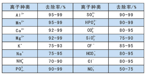 | 其對(duì)水中各離子的去除率見(jiàn)下表: |