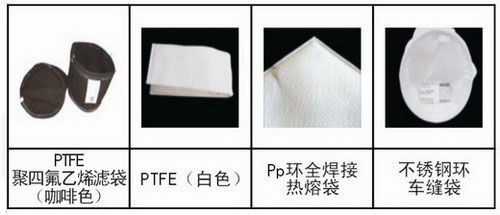濾袋材質:特有耐高溫耐酸堿聚四氟乙烯(PTFE)、聚脂(PE)、聚丙烯(PP)、尼龍單、復絲(NMO)等,能滿足從0.5~1000微米不等的精度過濾。